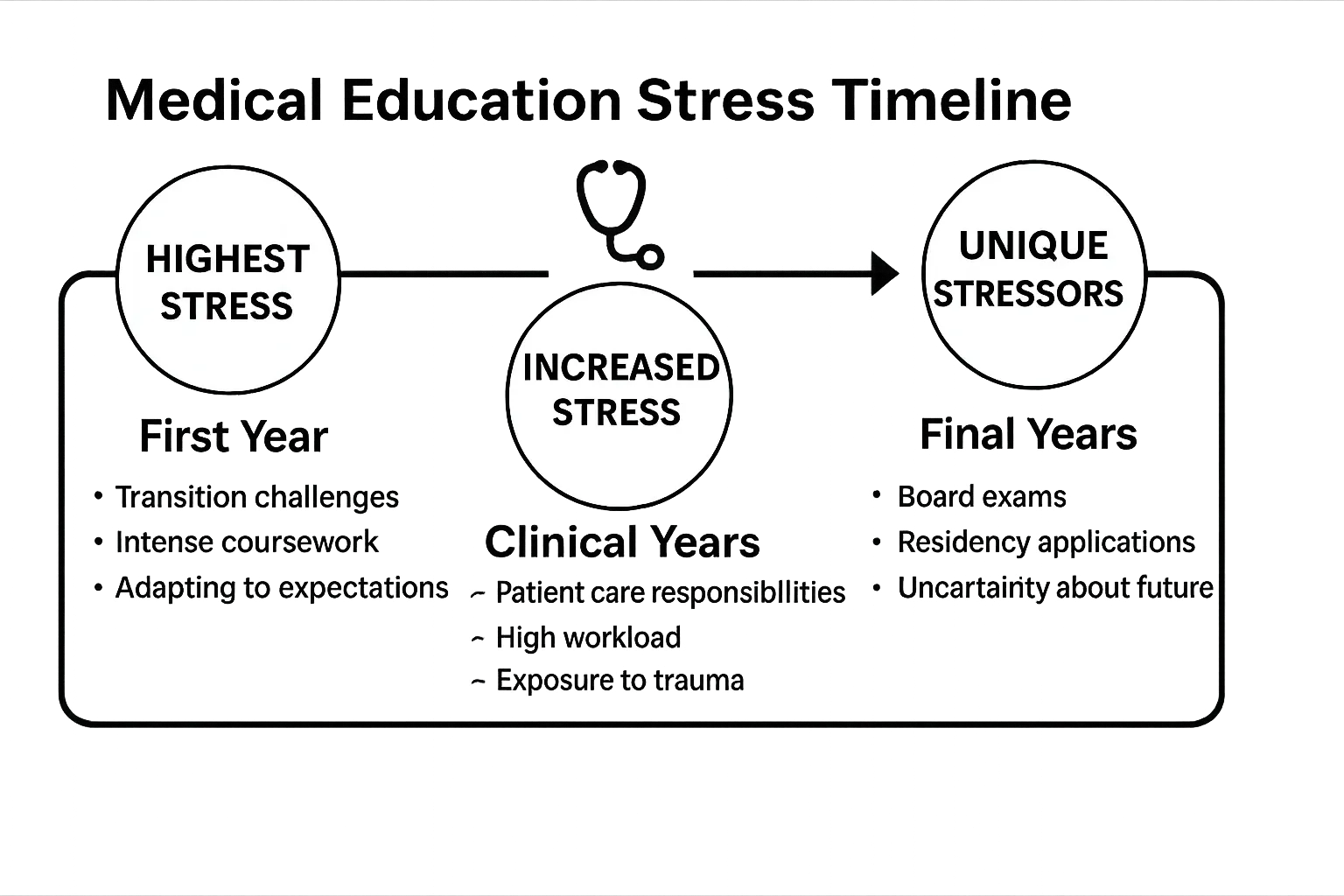 By the final years, students must juggle preparing for board exams and residency, which brings a unique set of stressors. Understanding these patterns helps guide interventions at each stage of training.