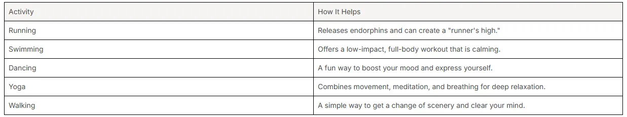 Here are some effective forms of physical activity for stress management: