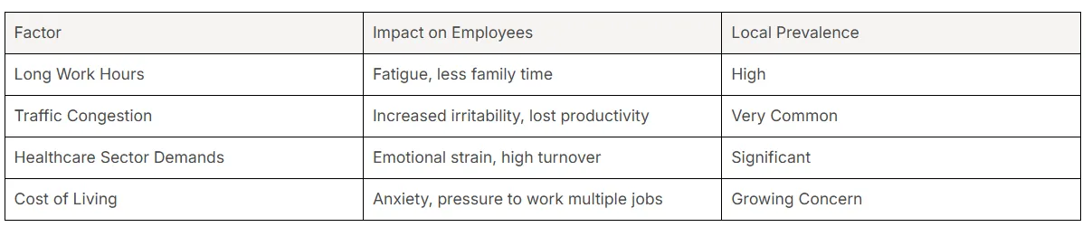 These factors directly impact employees’ mental health, leading to issues like anxiety, depression, and musculoskeletal disorders. Local health care providers emphasize occupational health and encourage stress management initiatives.
