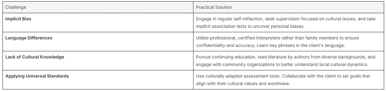 Addressing these challenges is a critical aspect of providing ethical and effective human services. The following sections identify some of the most common obstacles counselors face and offer practical solutions for overcoming these cultural barriers in their practice.