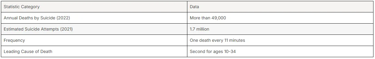 Suicide is one of the leading causes of death in the United States, making it an urgent public health problem with far-reaching consequences. The loss from suicide affects not only individuals but also their families, friends, and communities, creating ripples of grief and trauma.