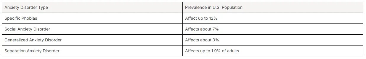 Here’s a look at the prevalence rates for some common anxiety disorders in the U.S. population, which helps illustrate their impact.