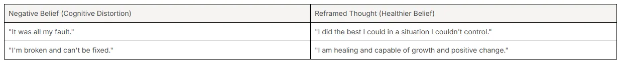 A therapist using CBT will help you identify these harmful thought patterns. The next step is to challenge them by examining the evidence for and against them. This process helps you see that these beliefs are often a product of the trauma, not a reflection of your true self.