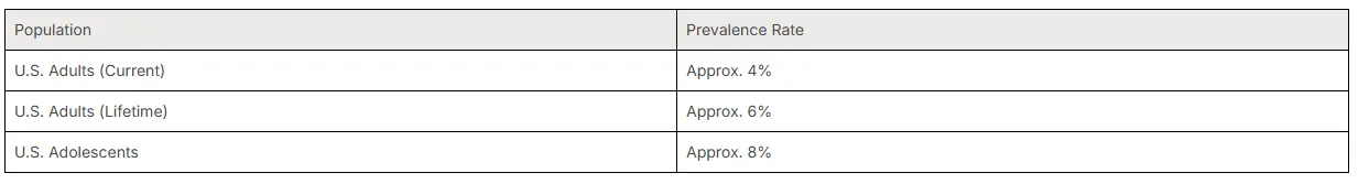 The U.S. Department of Veterans Affairs, an official government organization, estimates that about 6% of the U.S. population will have PTSD at some point in their lives. The Substance Abuse and Mental Health Services Administration (SAMHSA) confirms that millions of adults are affected annually by substance use disorder. For a clearer picture, consider the national prevalence rates.