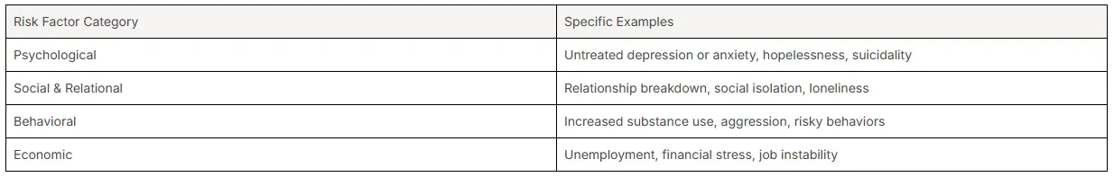Recognizing these contributors is vital. The table below outlines some of the primary risk factors for suicide in men.