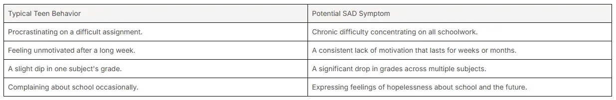 This overlap makes diagnosis and treatment more complex, highlighting the need for professional evaluation. A history of mental health challenges in the family can also increase a teen's risk. It is important to be extra watchful for seasonal mood shifts if these factors apply to your child.