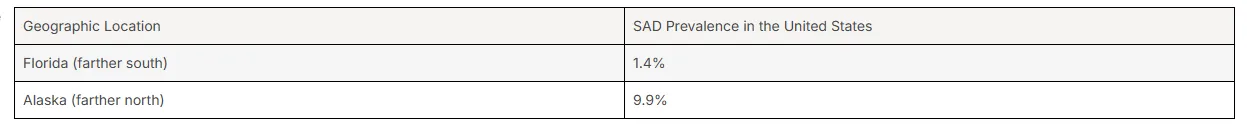 Geography provides further proof of this connection. The prevalence of SAD is much higher in people who live at northern latitudes, like in Alaska or New England, compared to those in sunnier states like Florida or Texas. The farther you are from the equator, the shorter the daylight hours are in winter, increasing your risk.